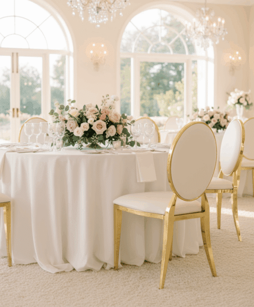 Ajoutez une touche d’élégance à votre événement avec notre Chaise Médaillon. Elle se distingue par son esthétique raffinée qui apporte un charme intemporel à tout type d’événement, qu’il s’agisse de mariages, de banquets, de galas, ou de réceptions privées.