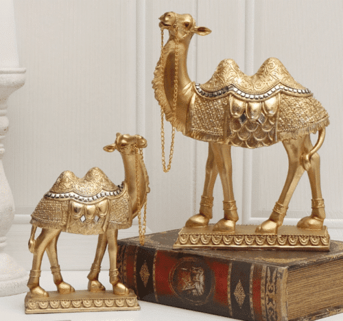 Ajoutez une touche d’élégance orientale à votre événement avec notre Magnifique Paire de chameaux dorés. Mesurant 27cm de haut sur 24cm de large et 21 cm de haut sur 15cm de large ces ornements en couleur or reflètent le raffinement et le charme d’un décor inspiré des comptes des mille et une nuits prenez contacte avec notre décoratrice Priscillia pour vous effectué une proposition de décor assortie à votre événement sur mesure