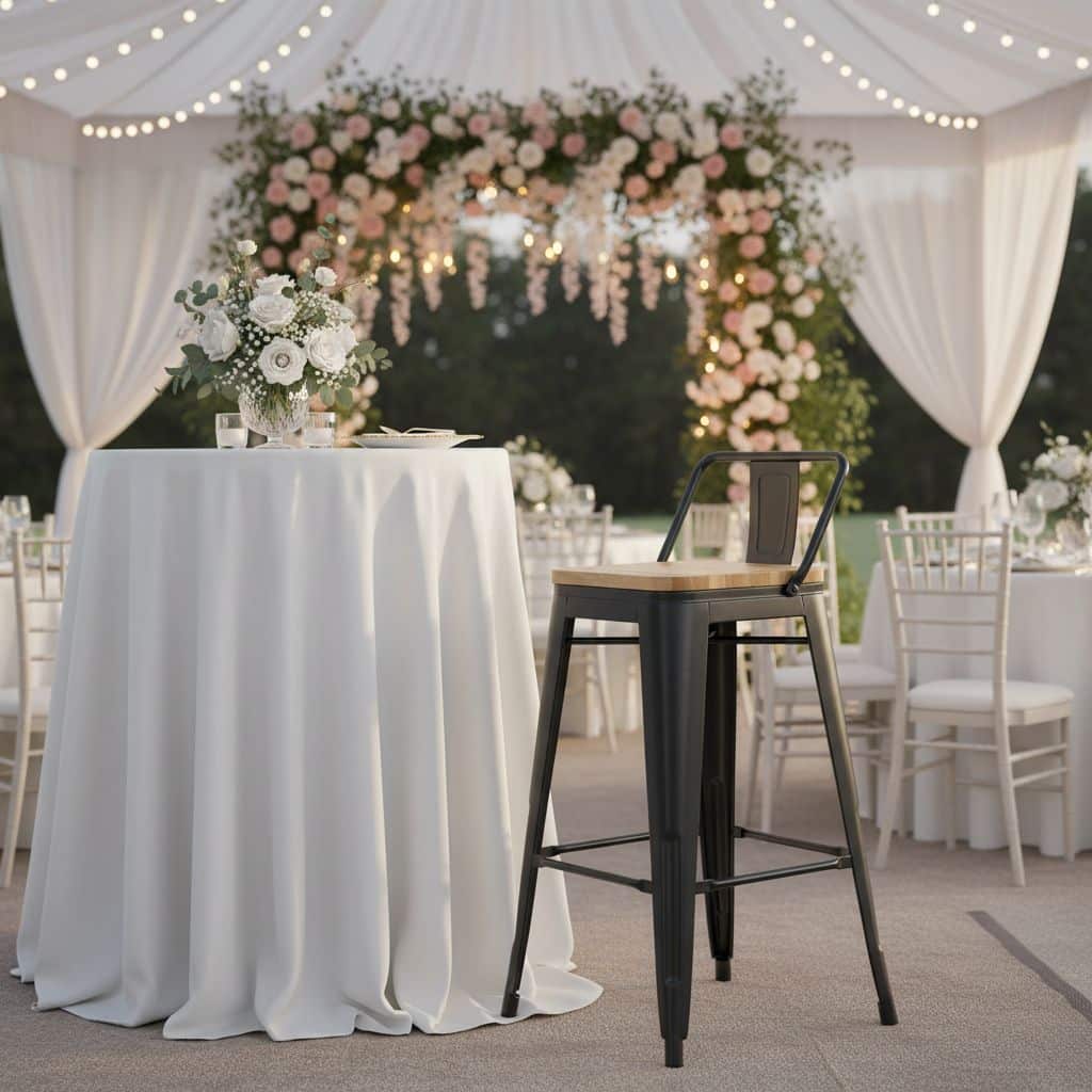 - Polyvalence : Idéale pour être utilisée avec des tables mange-debout ou dans des espaces de réception en plein air ou en intérieur.