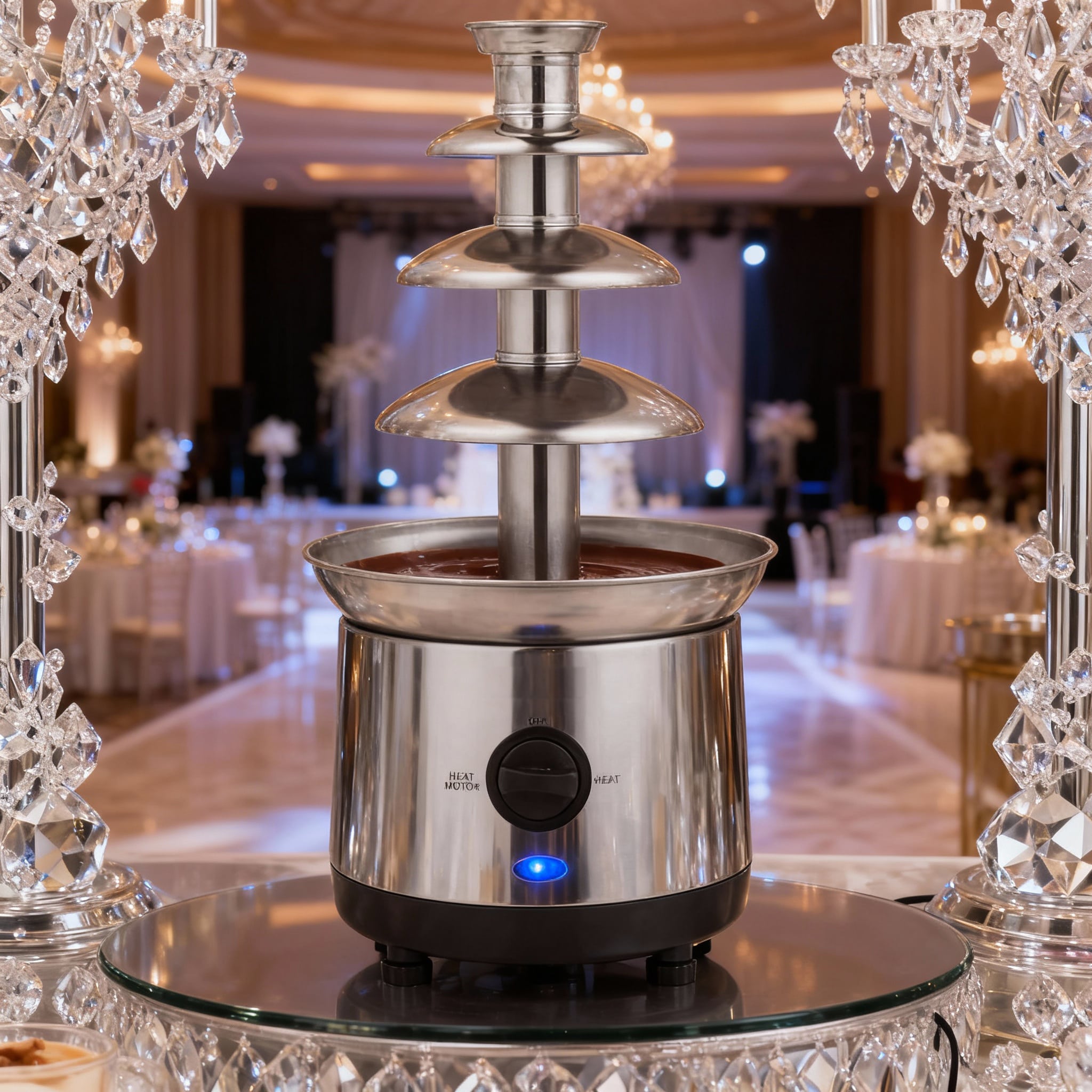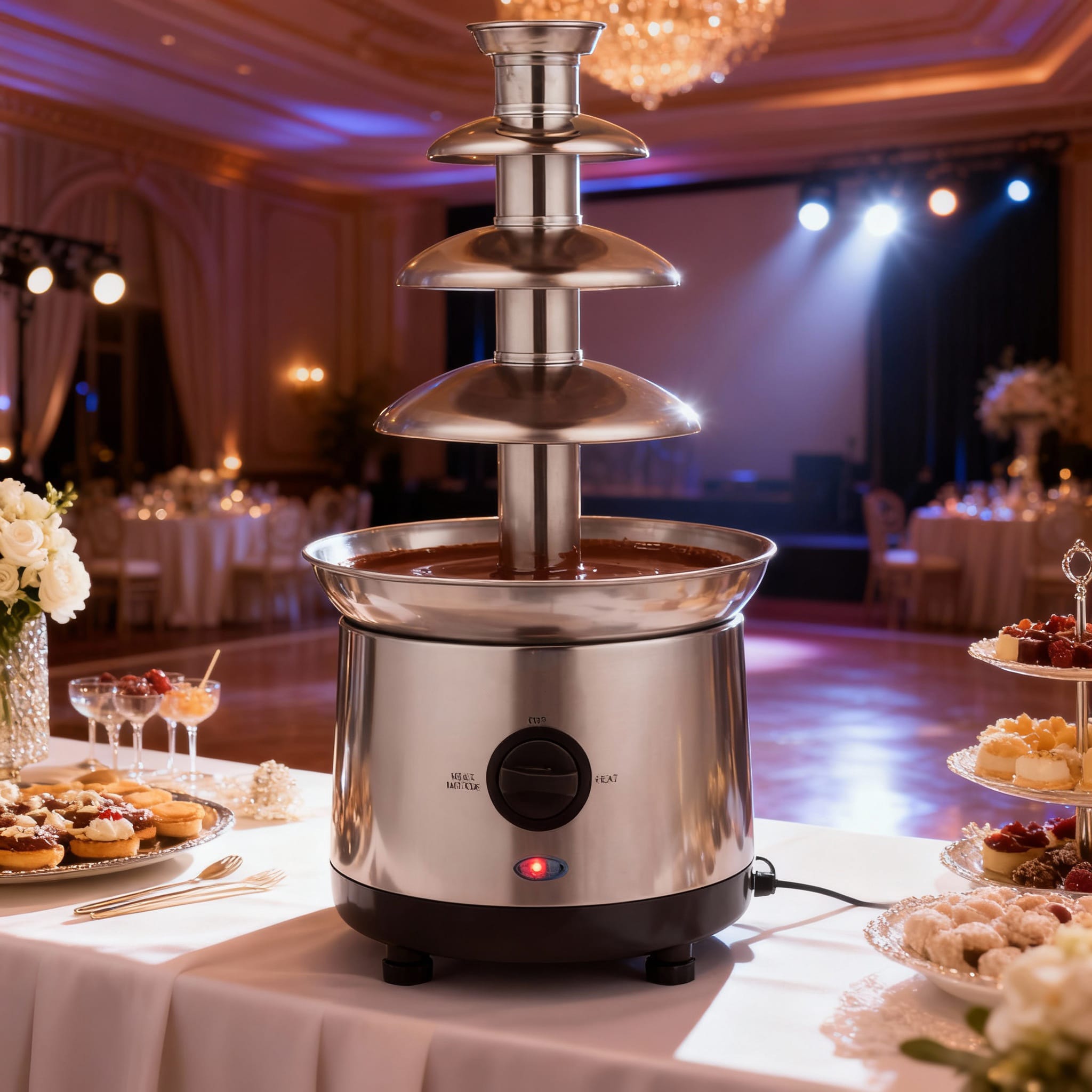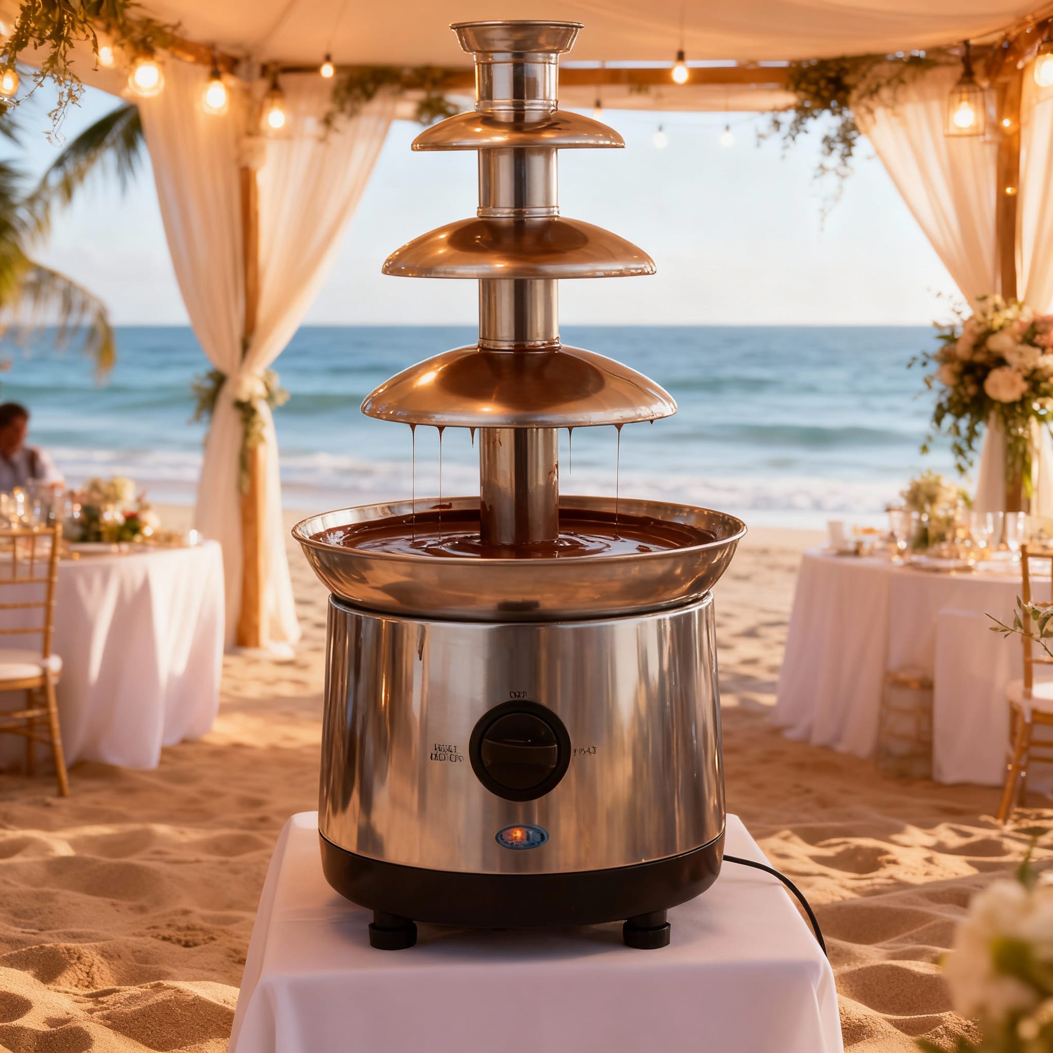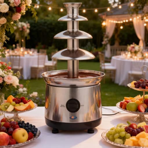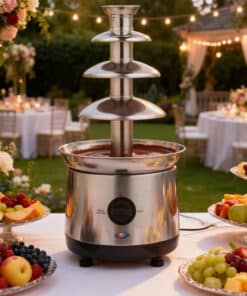 Offrez une touche sucrée et spectaculaire à votre événement avec notre fontaine à chocolat XXL à 4 étages. Fabriquée en acier inoxydable, cette fontaine est parfaite pour les mariages, anniversaires, et toutes sortes de réceptions festives.